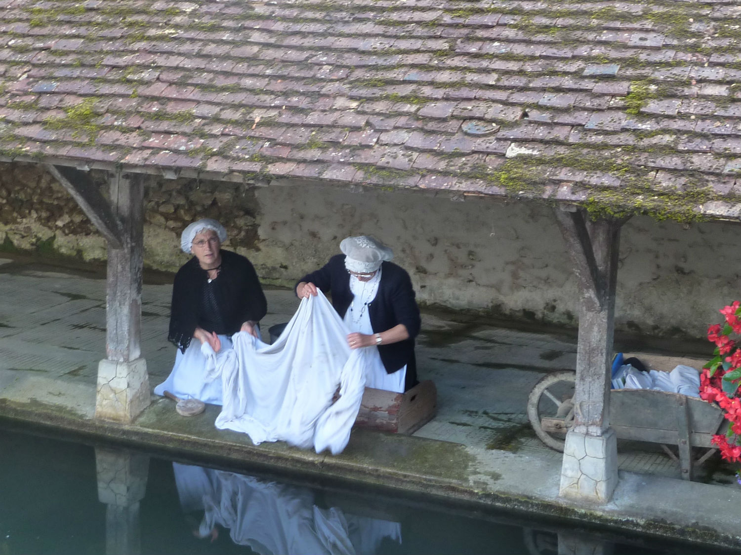 Place ensuite à une balade vers les lavoirs, celui de Morteveille où deux laveuses se sont activées à l’évocation du texte de Gaston Chevereau :