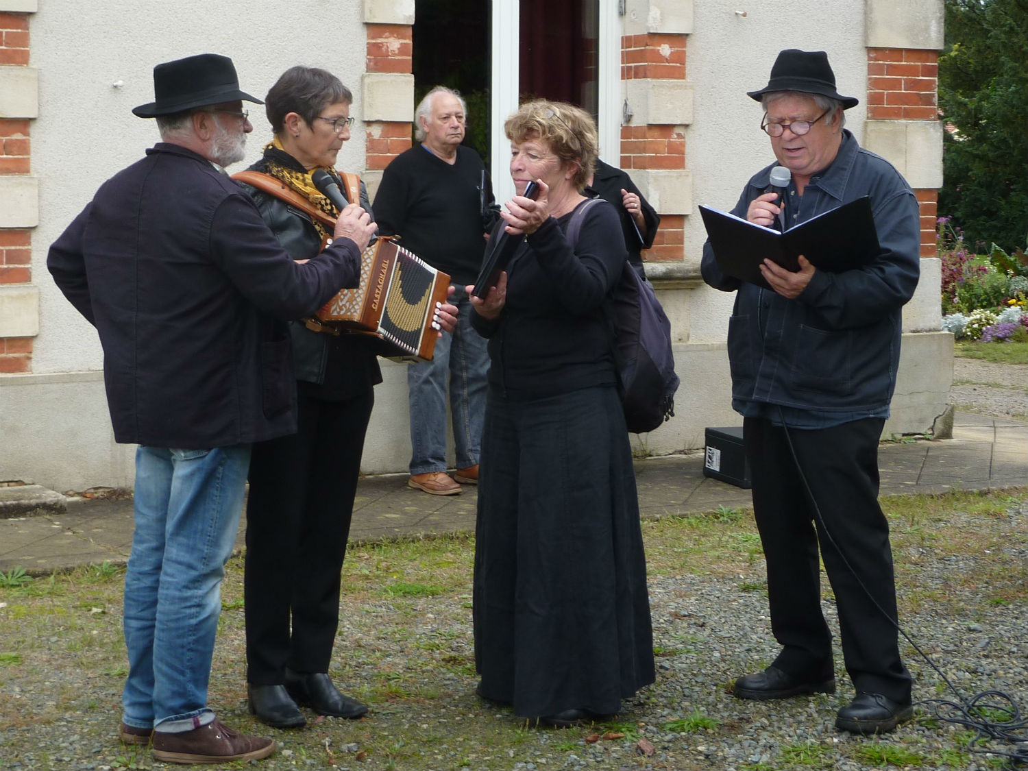 Puis, la balade fut ponctuée d’arrêts où les Chemineux ont dit ou chanté des poèmes. Derrière la laveuse et sa brouette chargée, le groupe, traversant le parc de la mairie, s’est dirigé vers les lavoirs privés le long de la Morte Parence et le deuxième lavoir communal. La balade s’est terminée à la salle Saint-Exupéry à la découverte de l’exposition. Le verre de l’amitié offert par la municipalité a invité aux échanges sur ce patrimoine.