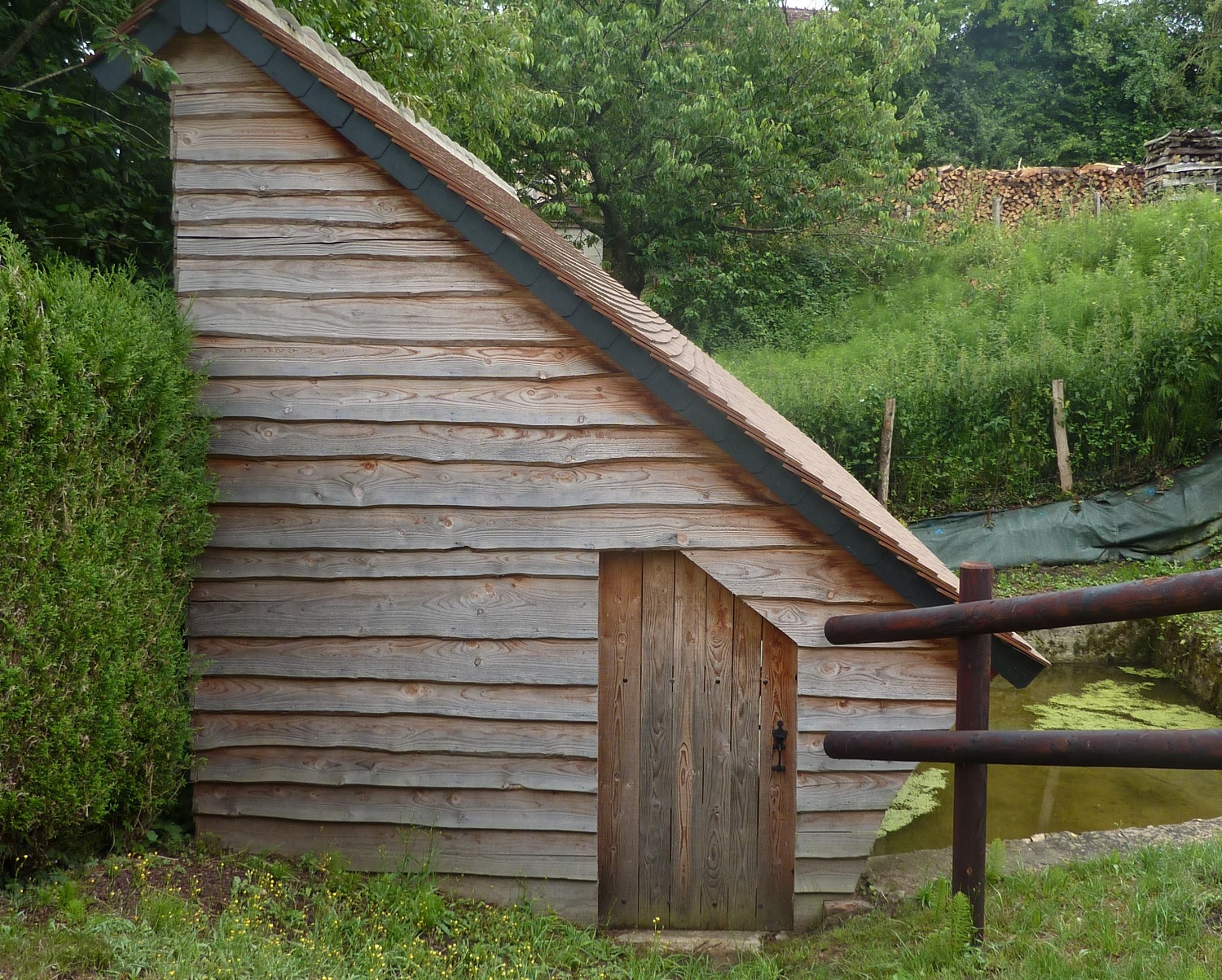 Cette réalisation a bien eu lieu, le bardage a été refait et les tuiles remplacent la tôle rouillée. Le site nettoyé est paysager et fleuri.