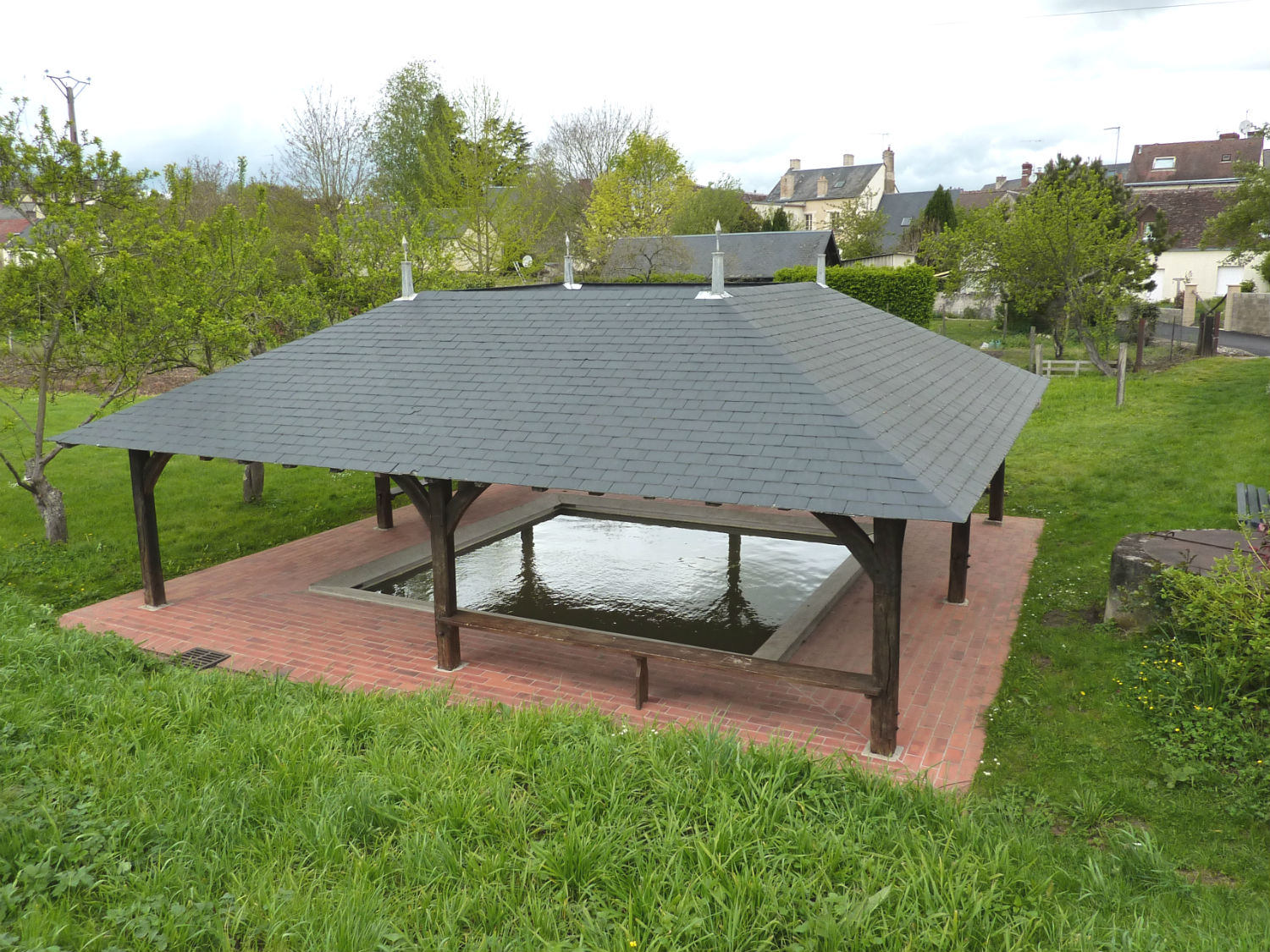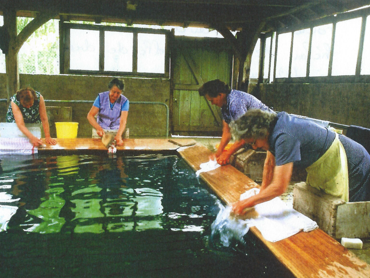 En 1982, les dernières laveuses étaient bien abritées dans ce bâtiment clos à mi-hauteur de murs en briques sur les quatre côtés avec un vitrage sur la partie supérieure.