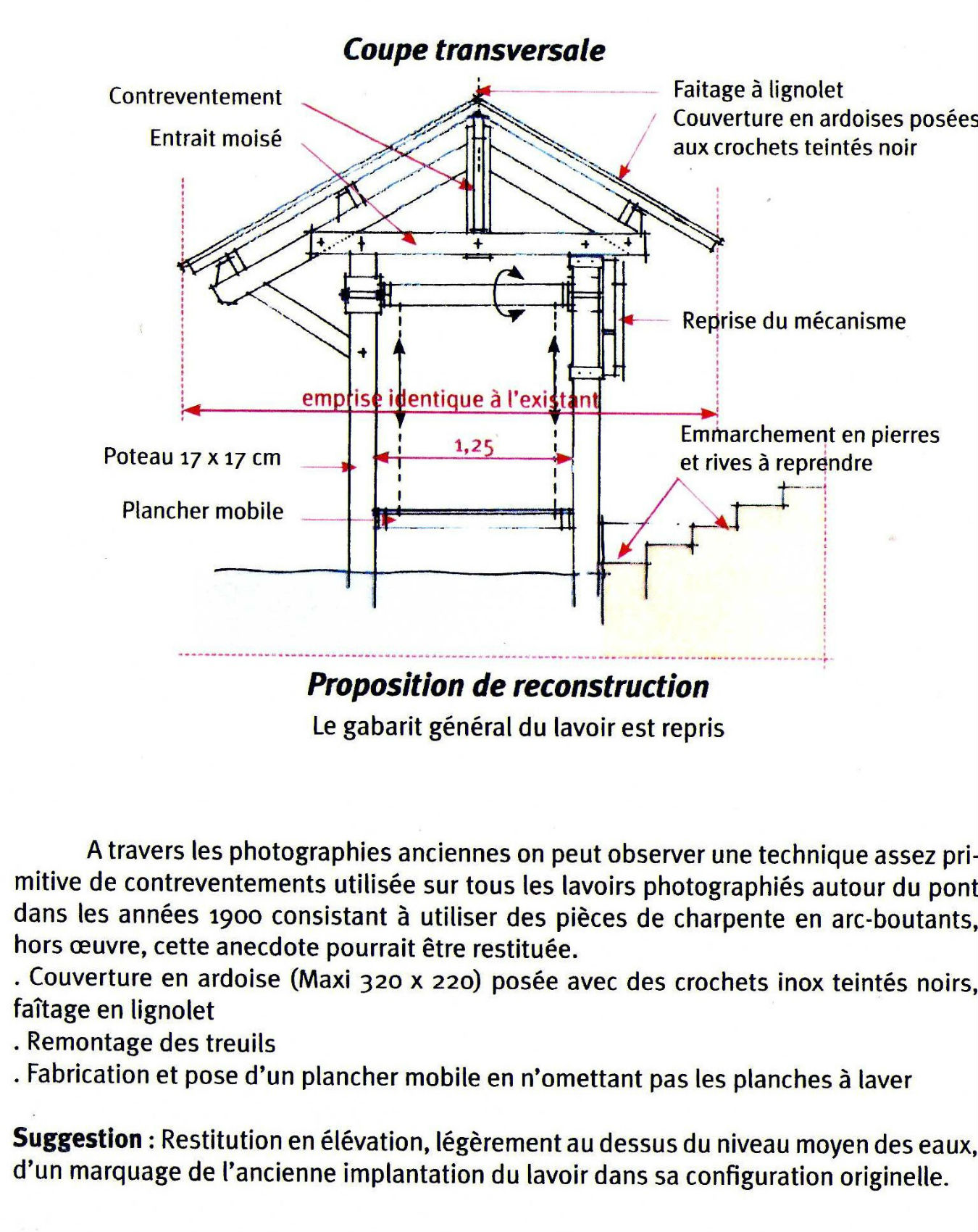 Après un état des lieux en février 2013, une étude exploratoire pour la réhabilitation du lavoir du pont Napoléon datant de juillet de la même année fut réalisée et donnait une proposition de reconstruction. Comme le souligne l’article de Ouest-France du 9 octobre 2014, « en raison de la complexité et de l’ampleur des travaux à faire réaliser par des professionnels, cette opération coûte près de 19 400€. Un appel aux dons a donc été lancé par le biais d’une souscription ». Lors de la réunion d’information qui s’est tenue à la mairie le 10 octobre, Alain Besnier, maire et Catherine Porcher, présidente de l’association du Patrimoine ont signé la convention avec la Fondation du Patrimoine de la Sarthe, lançant la campagne de souscription.