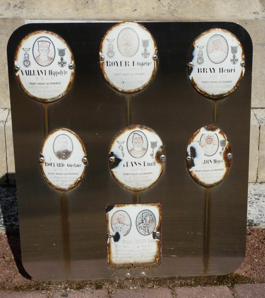 Les corps de 7 militaires français enterrés dans le cimetière et en dehors ont été réinhumés dans une concession de 2 mètres. 3 militaires allemands inhumés dans les champs ont été transférés au cimetière, où l’État a acquis une autre concession de 2 mètres. Les deux tombes sont entourées de grilles en fer. Les propriétaires des terrains occupés ont été indemnisés.
